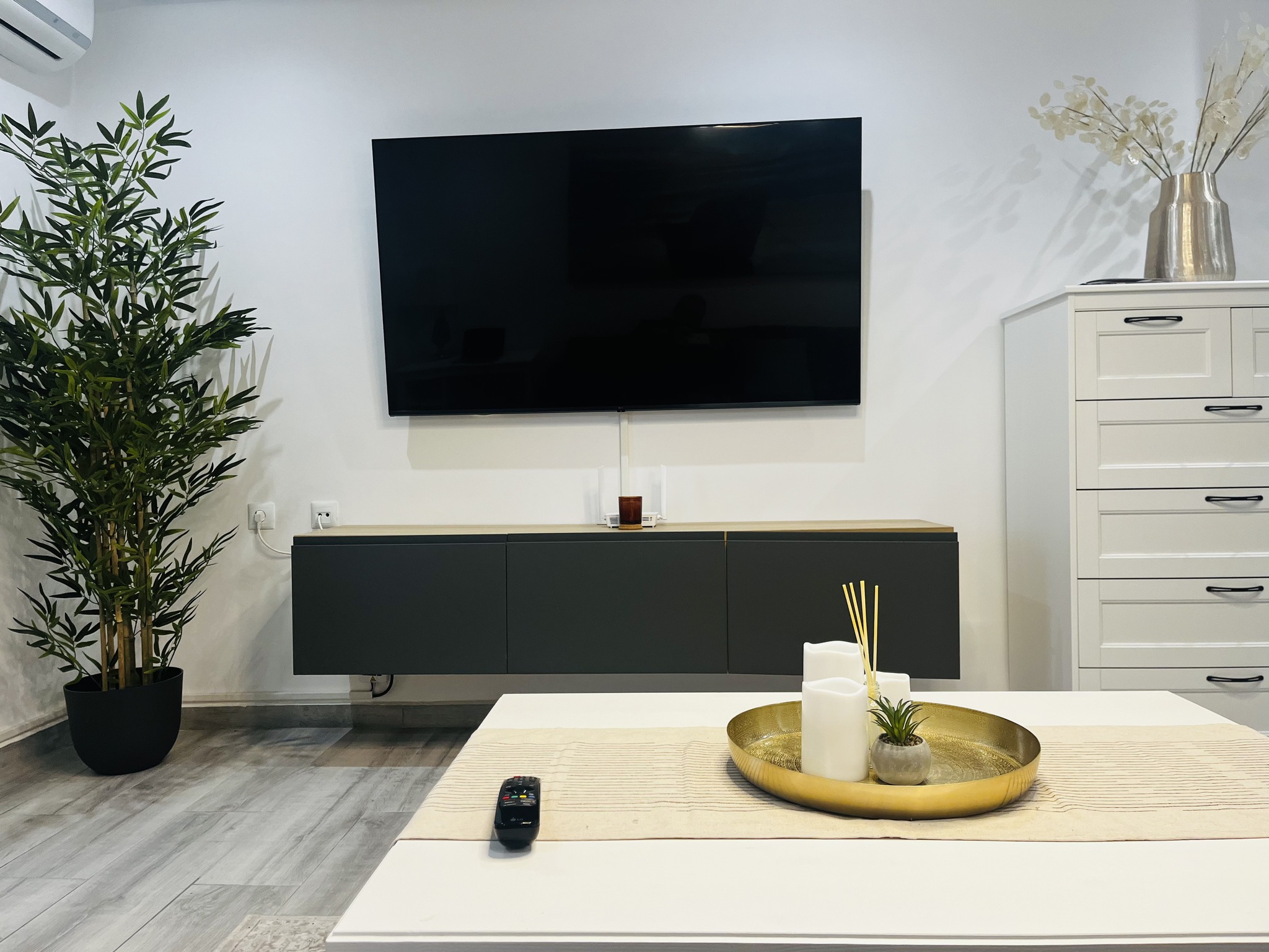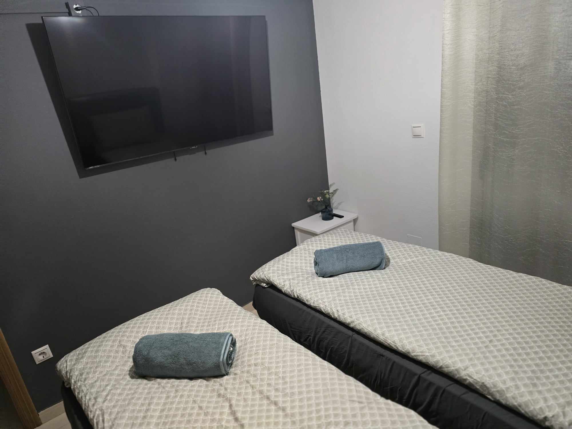 A lakásban két háló található, egyik francia a másik iker ágyas, konyha, nappali , ahol egy kétszemélyes kanapé van és egy bazi nagy TV, internettel, Netflix, YouTube stb…eléréssel.