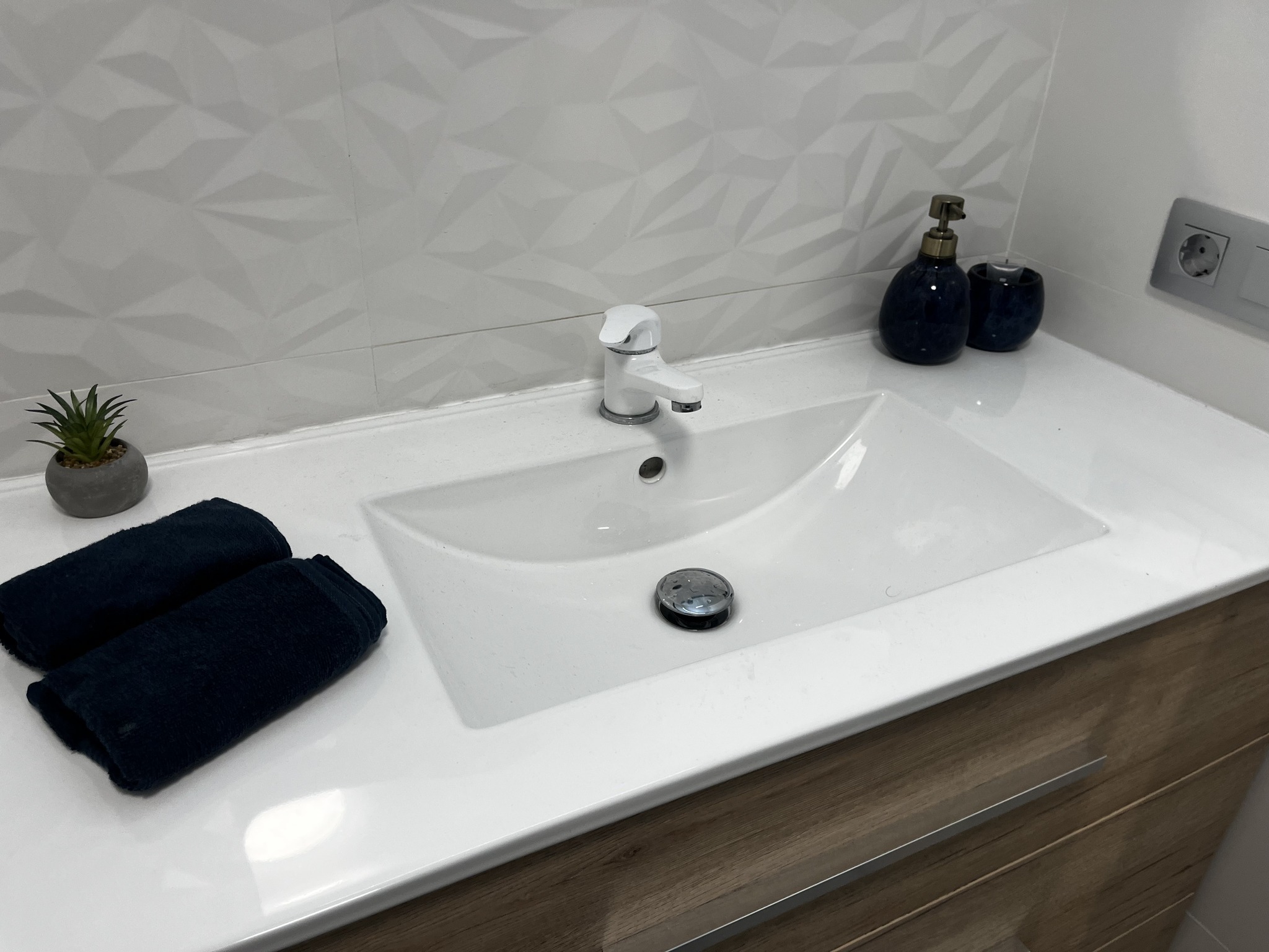 A konyhában főzőlap, mikro, Dolce Gusto kávégép, mosogatógép, mosógép, nagy hűtő (vadi újak) szolgálja a jövendő bérlők kényelmét. Minden helyiség klimatizált.